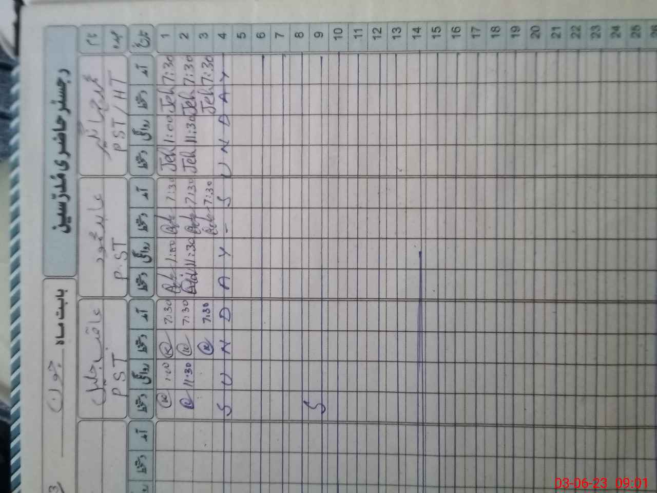 | CNIC | Full Name | Designation | R/C | Absence During Last Calender Month |