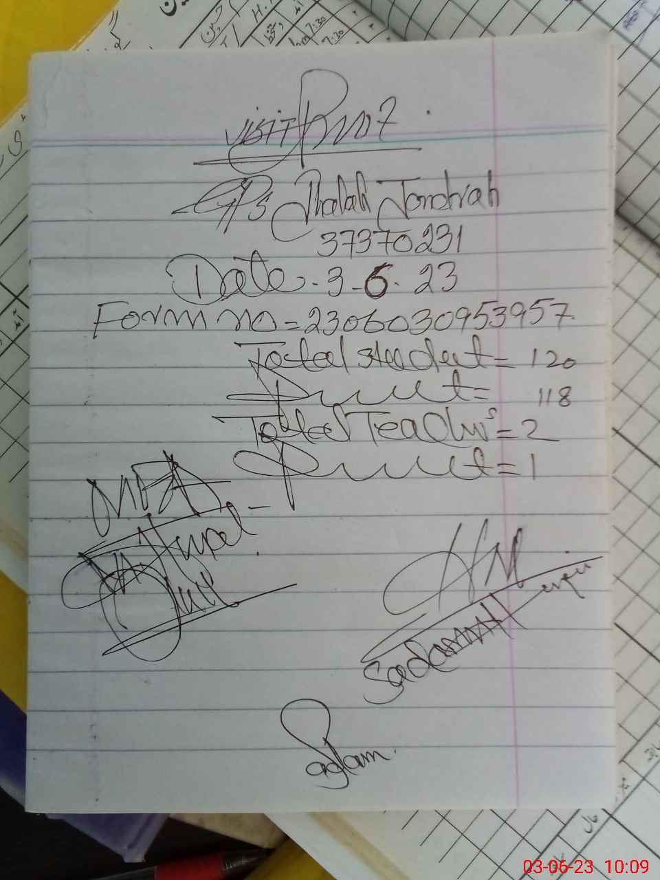 | Attendance Register | Head Teacher | MEA with School | Visit Proof |