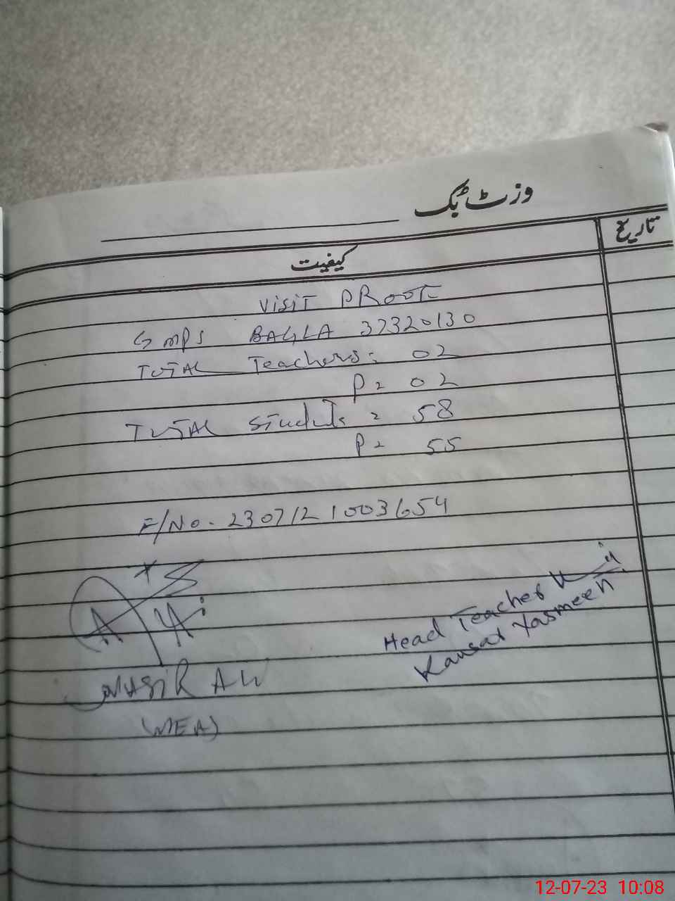 | Attendance Register | Head Teacher | MEA with School | Visit Proof |