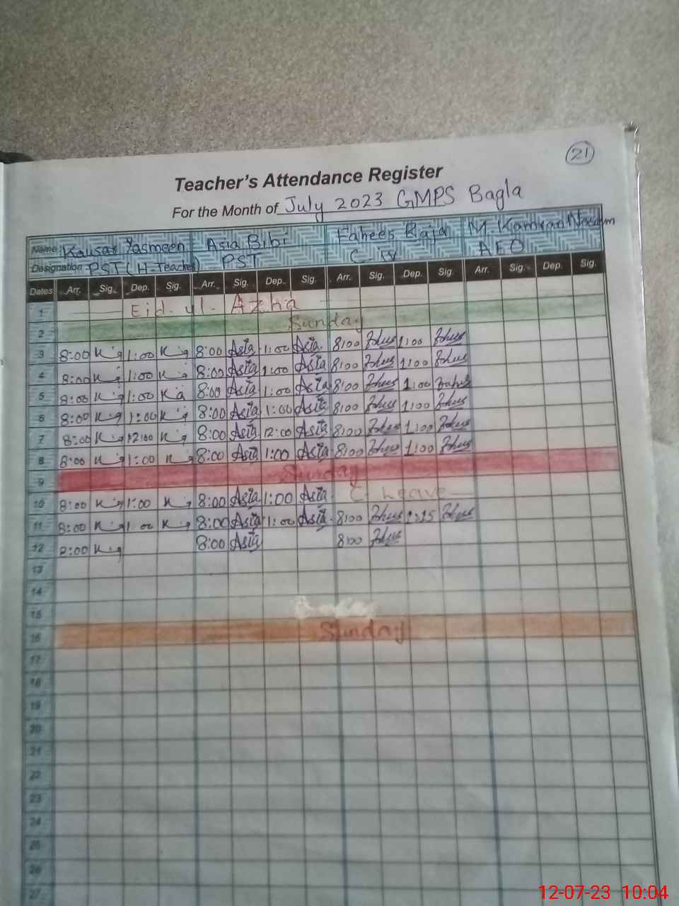 | Name: KA**** YA**** Designation: (School Headmaster's/Headmistress's) PST Phone/Cell Number: 03**** |