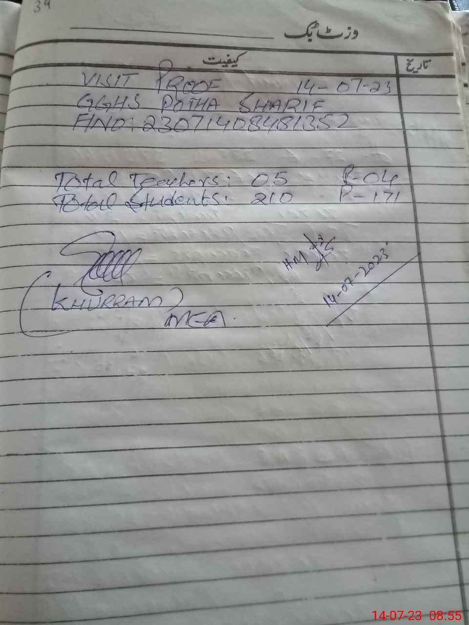 | EMIS Code: 37320044 | Name of School: GGHS POTHA SHARIF | |||