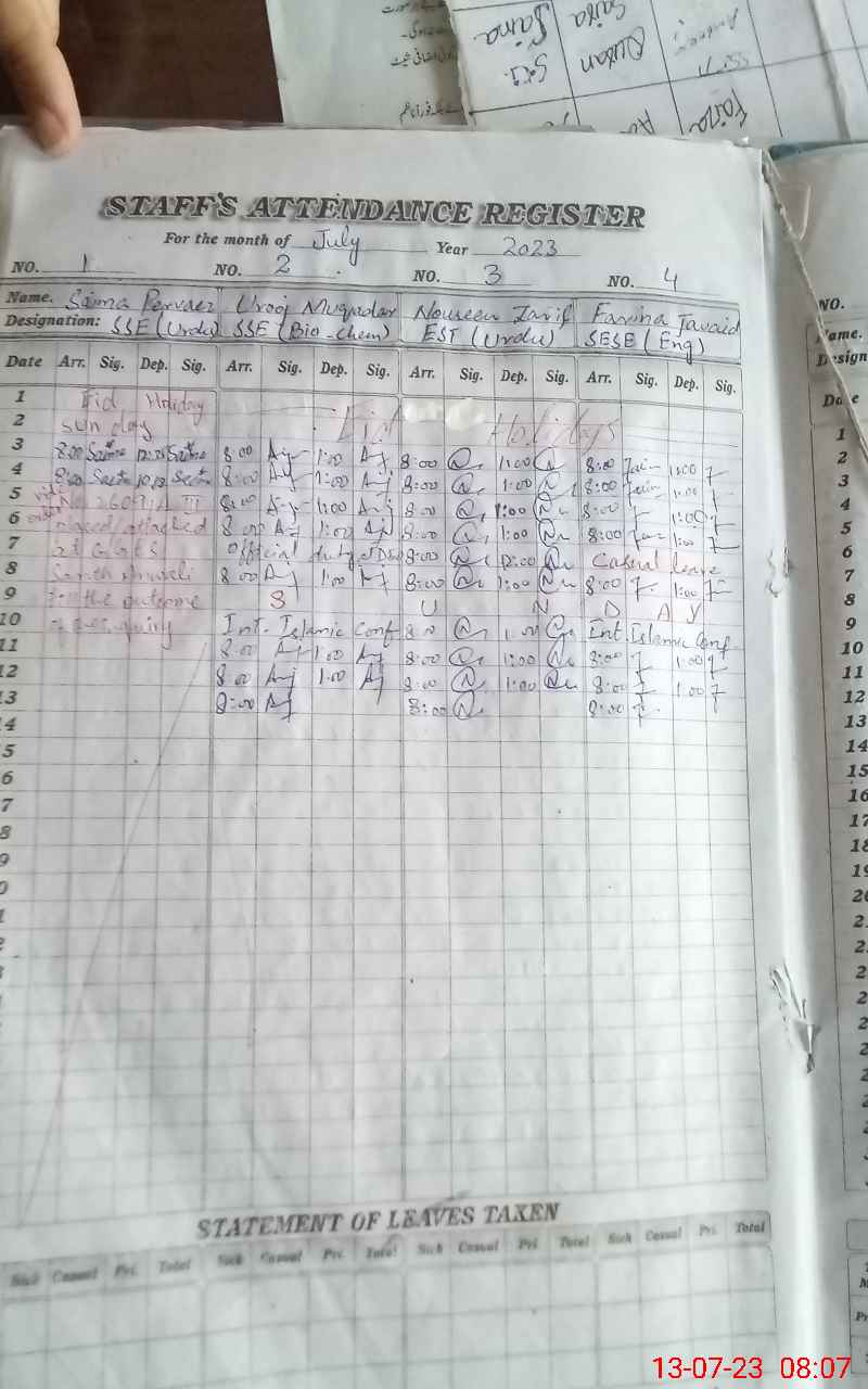| Name: UR**** MU**** Designation: (School Headmaster's/Headmistress's) SSE. B I O Phone/Cell Number: 03**** |
