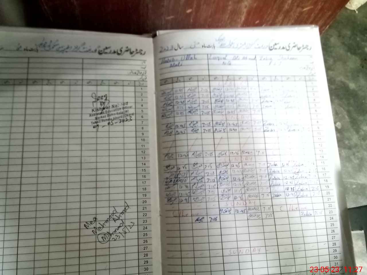 | Name: SO**** AS**** Designation: (School Headmaster's/Headmistress's) S.S.T.(Arts) Phone/Cell Number: 03**** |