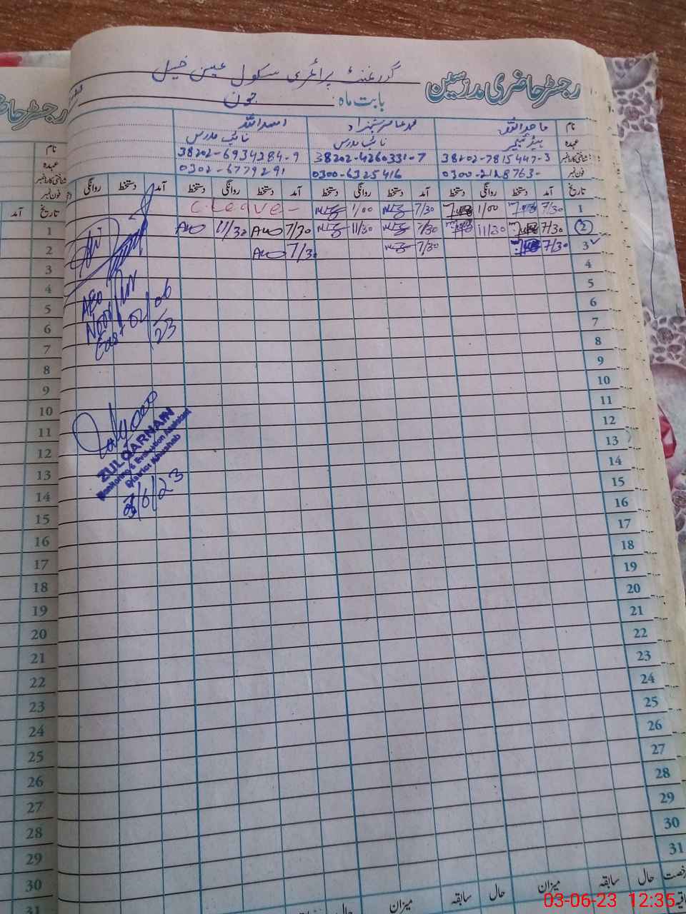 | Name: As**** Ul**** Designation: (School Headmaster's/Headmistress's) PST Phone/Cell Number: 03**** |