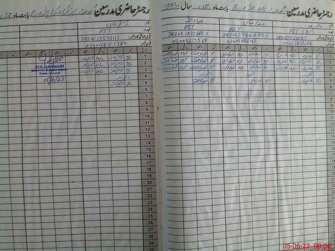 | Name: Aa**** Ra**** Designation: (School Headmaster's/Headmistress's) PST Phone/Cell Number: 03**** |