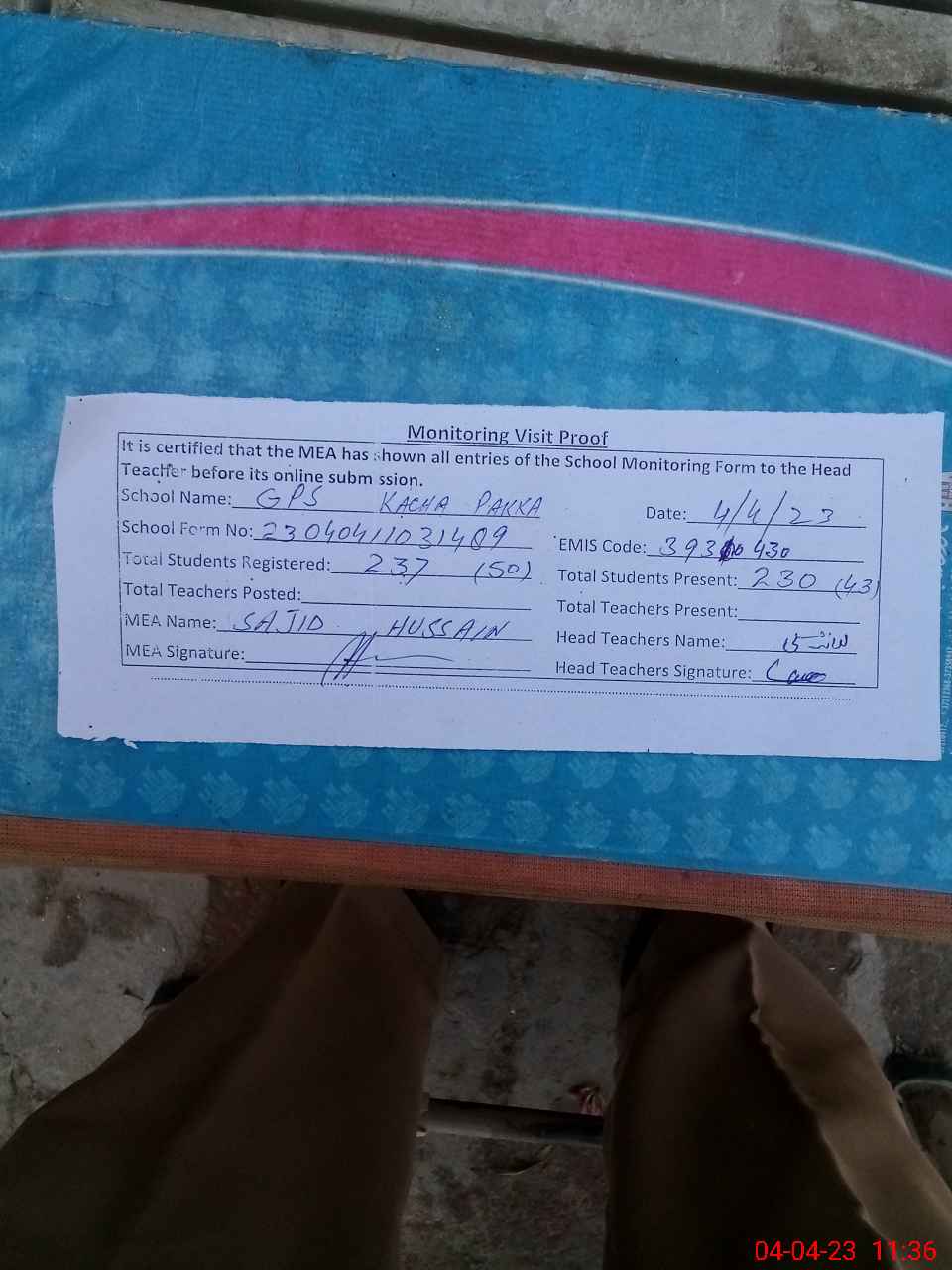 | EMIS Code: 39310430 | Name of School: GPS KACHA PAKA | |||