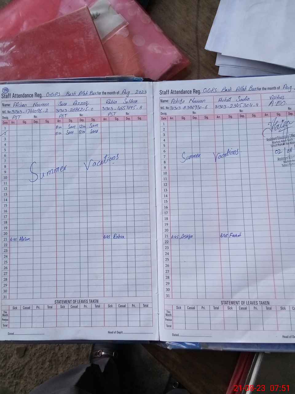 | Name: As**** No**** Designation: (School Headmaster's/Headmistress's) P S T Phone/Cell Number: 03**** |