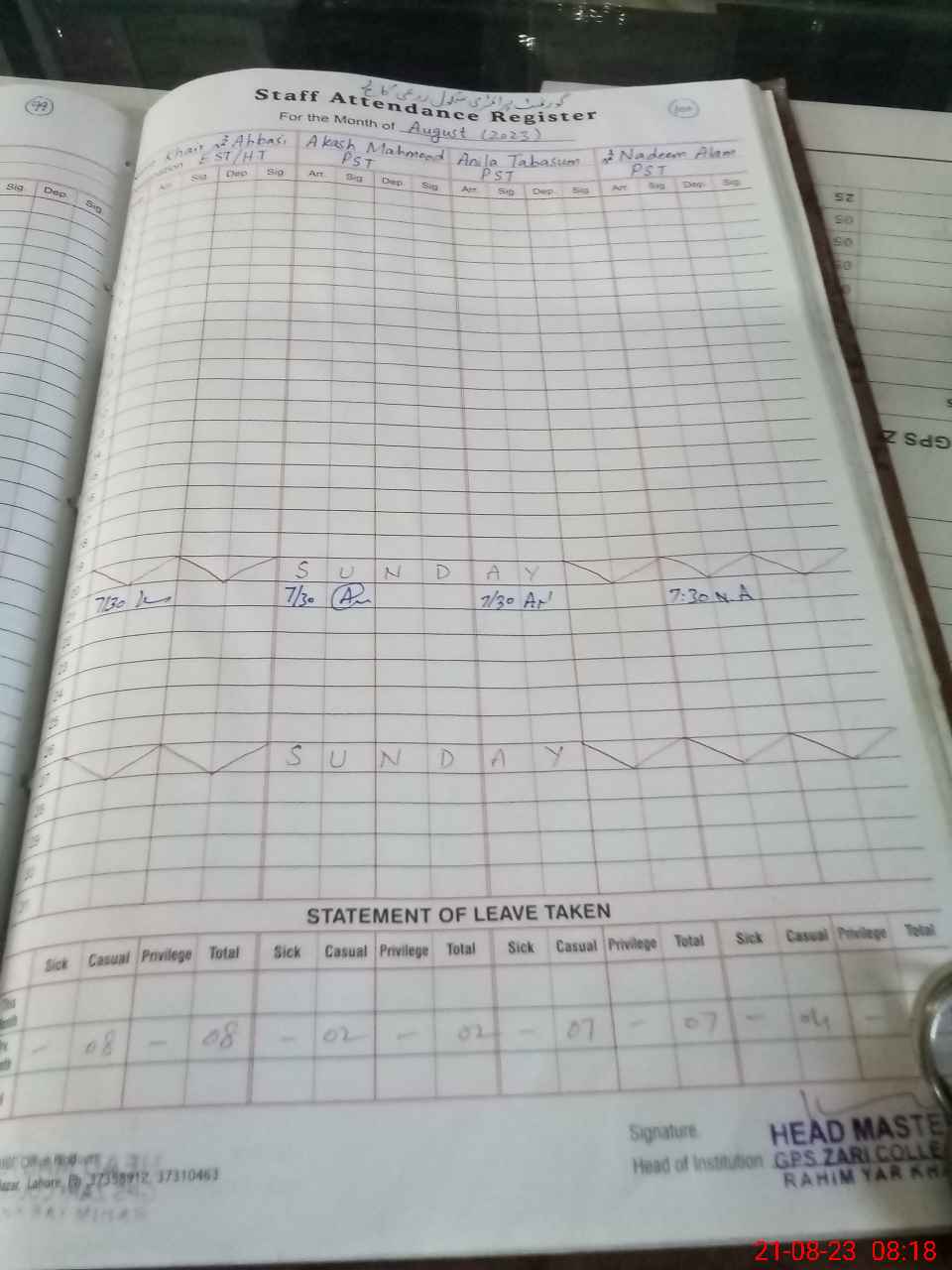 | Name: Kh**** Mu**** Ab**** Designation: (School Headmaster's/Headmistress's) Est Phone/Cell Number: 03**** |