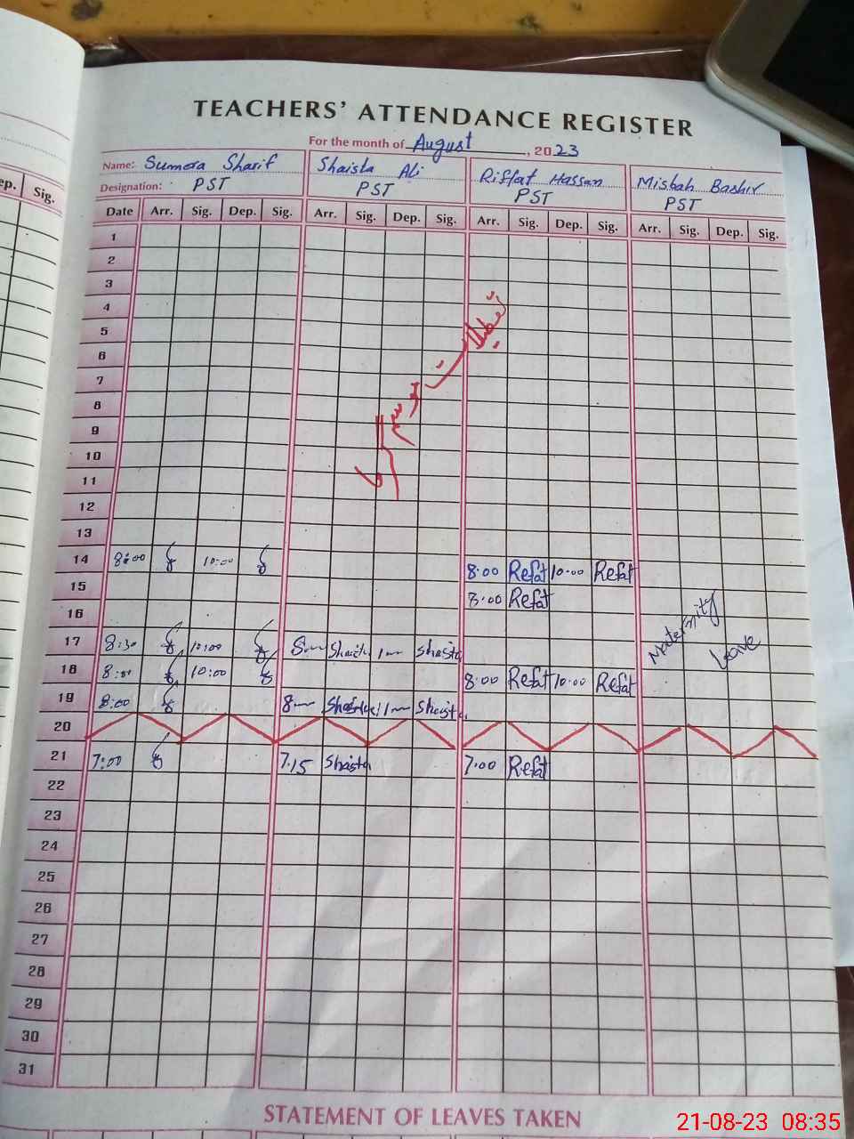 | 36**** | Mi**** Ba**** | PST | Regular | 27 | 0 | 0 | 27 | 0 | 0 | 0 | 0 | 0 | Maternity |