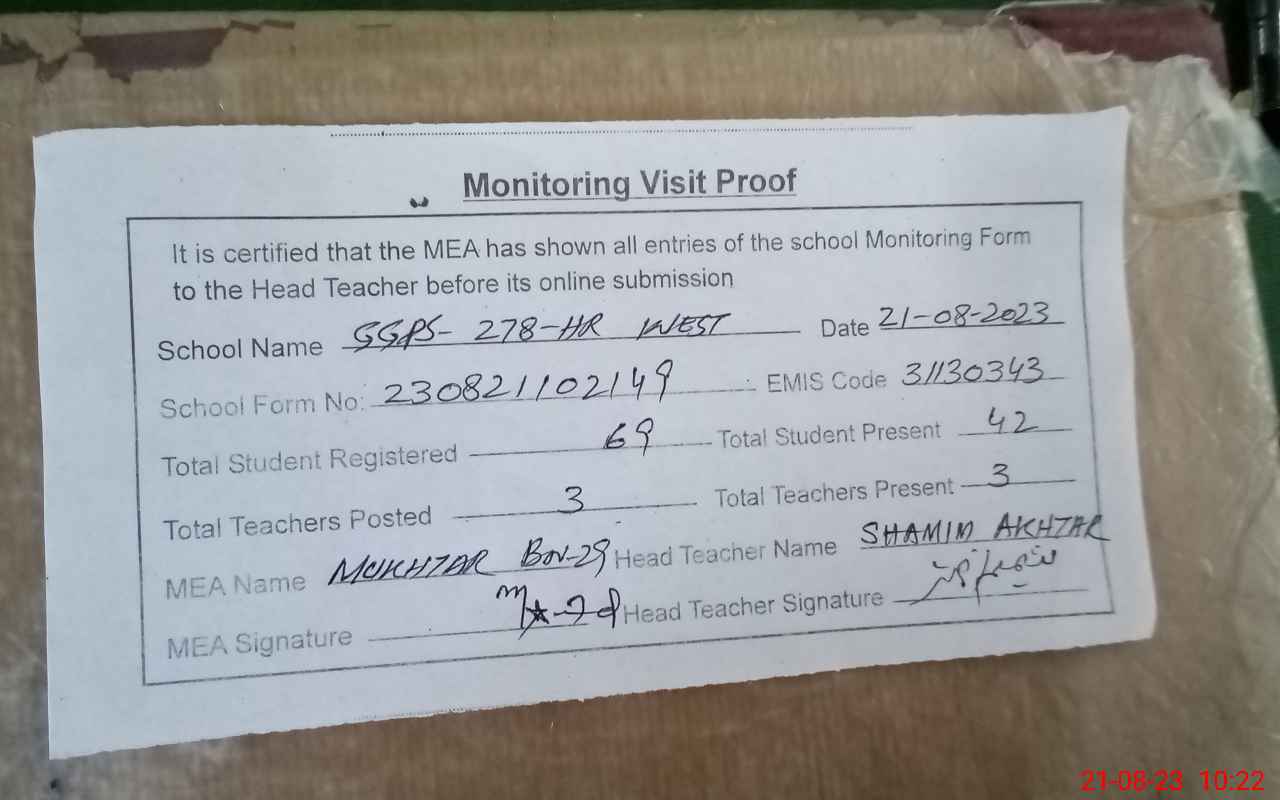 | EMIS Code: 31130343 | Name of School: GGPS CHAK NO 278 HR W | |||