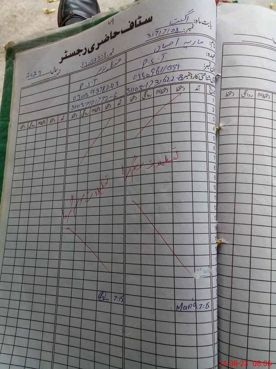 | CNIC | Full Name | Designation | R/C | Absence During Last Calender Month |