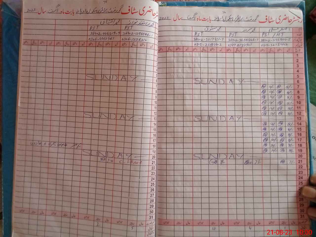| Name: AS**** AL**** Designation: (School Headmaster's/Headmistress's) PST Phone/Cell Number: 03**** |