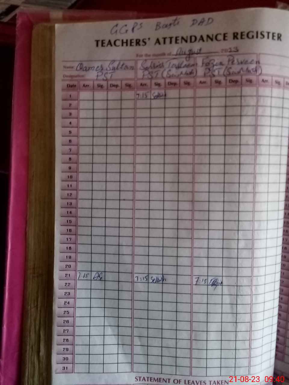 | EMIS Code: 36120293 | Name of School: GGPS BASTI DAD SHUJABAD MULTAN | |||