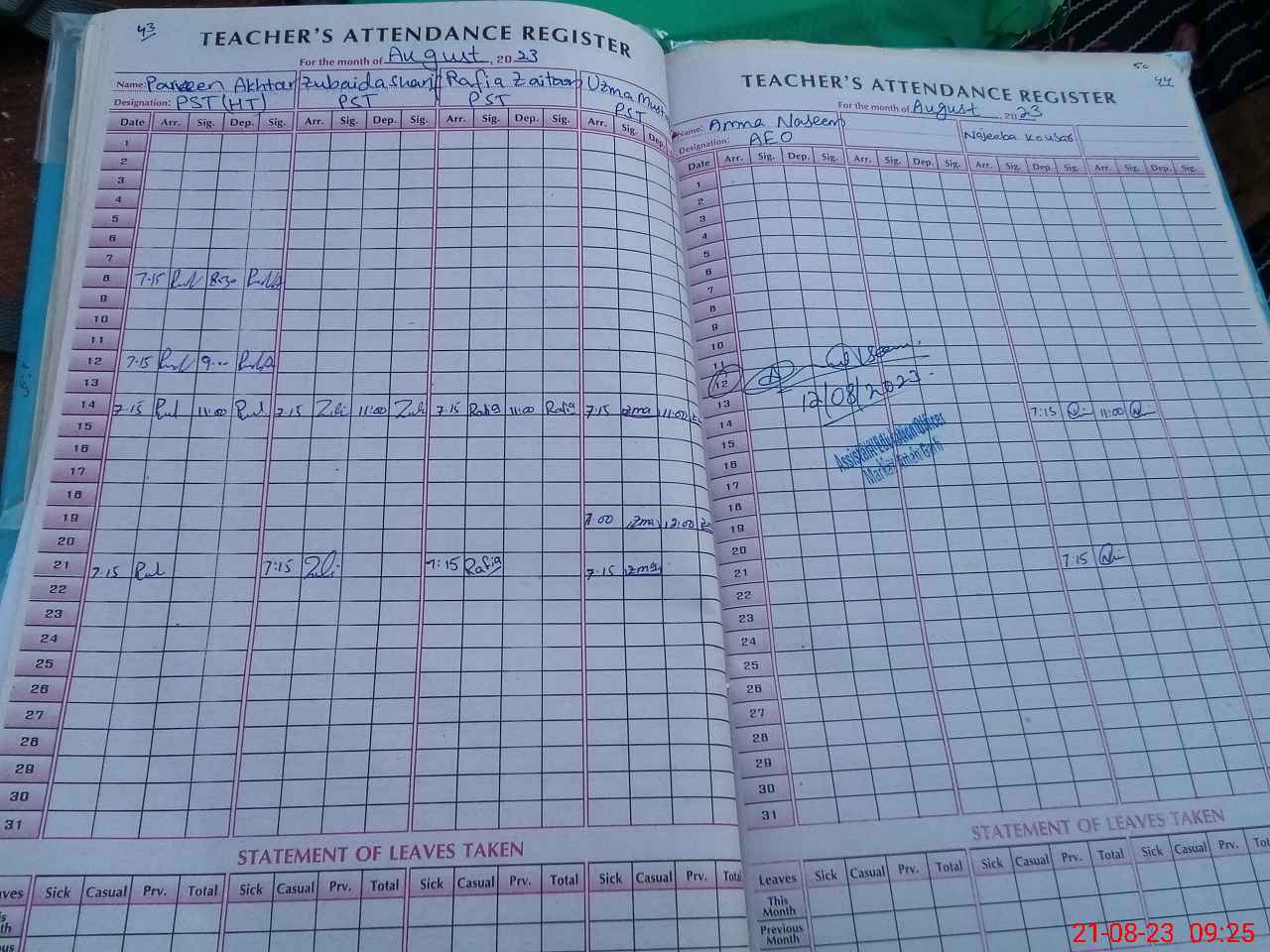 | Name: PA**** AK**** Designation: (School Headmaster's/Headmistress's) PST Phone/Cell Number: 03**** |