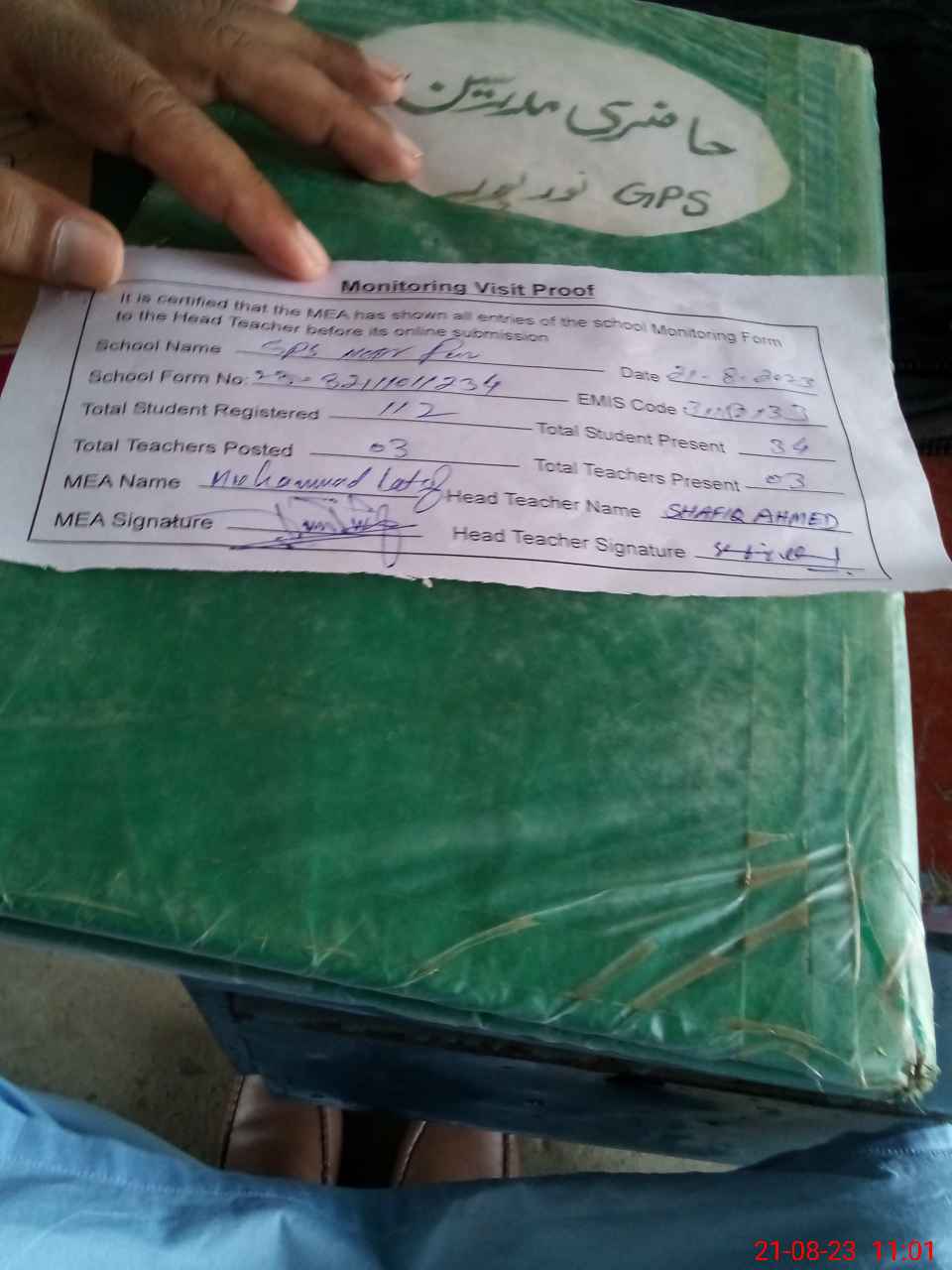 | Attendance Register | Head Teacher | MEA with School | Visit Proof |