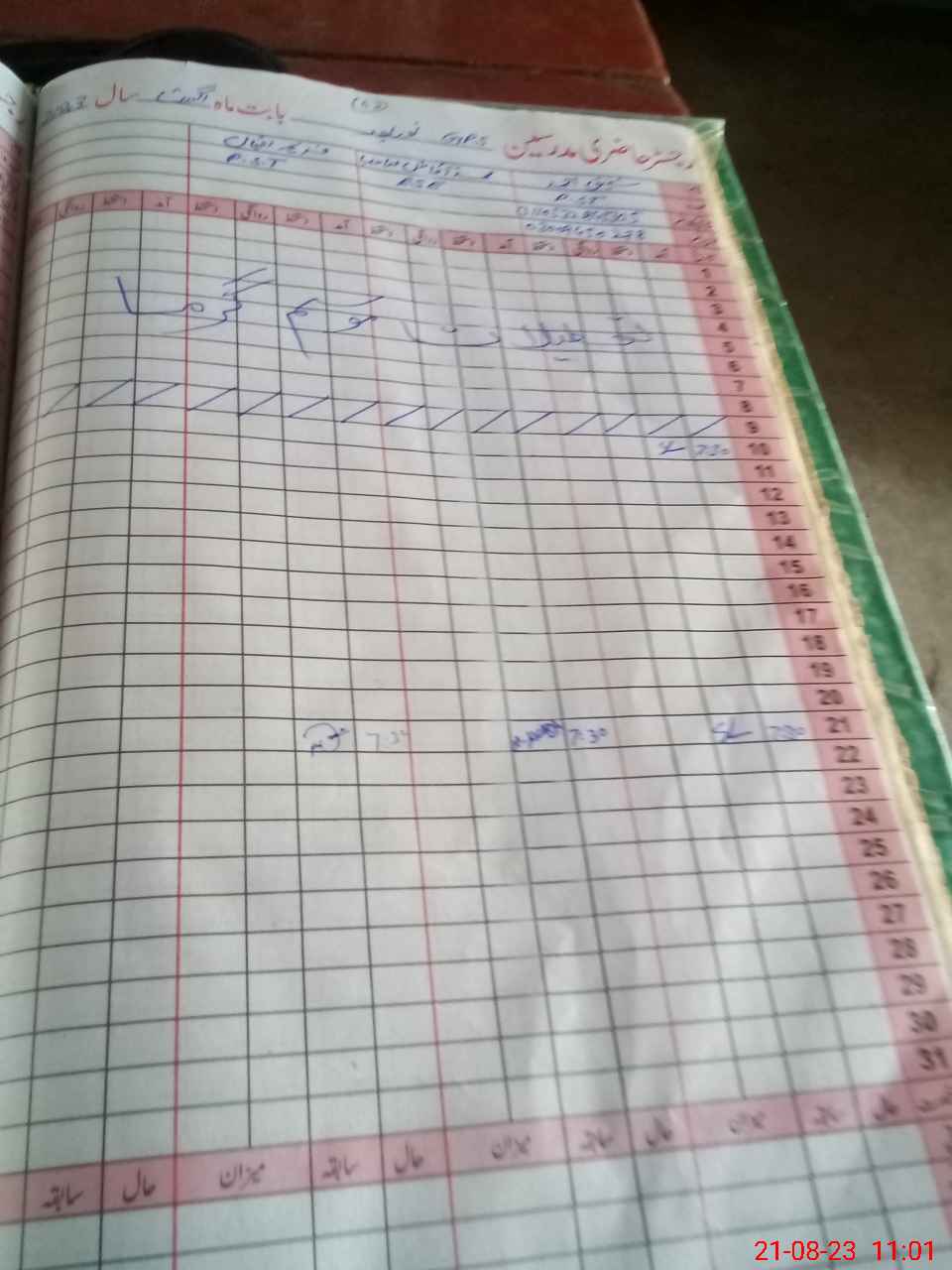 | CNIC | Full Name | Designation | R/C | Absence During Last Calender Month |