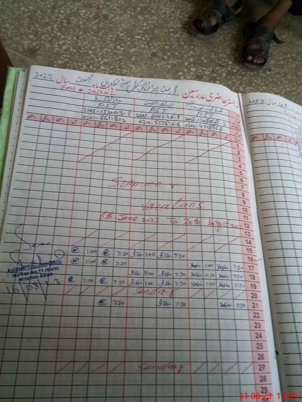 | Name: MYa**** Designation: (School Headmaster's/Headmistress's) PST Phone/Cell Number: 03**** |
