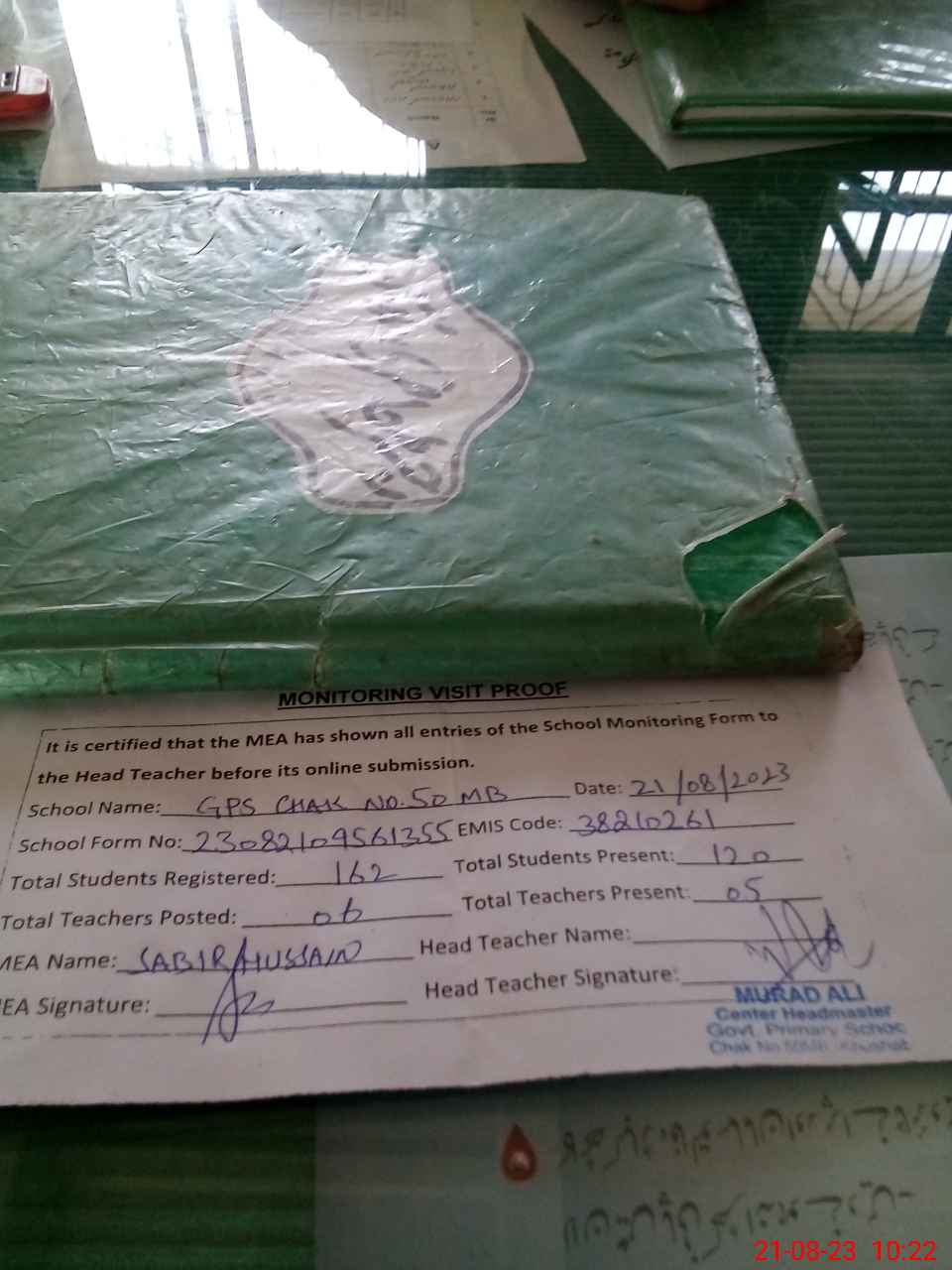 | EMIS Code: 38210261 | Name of School: GPS CHAK NO 50 MB | |||