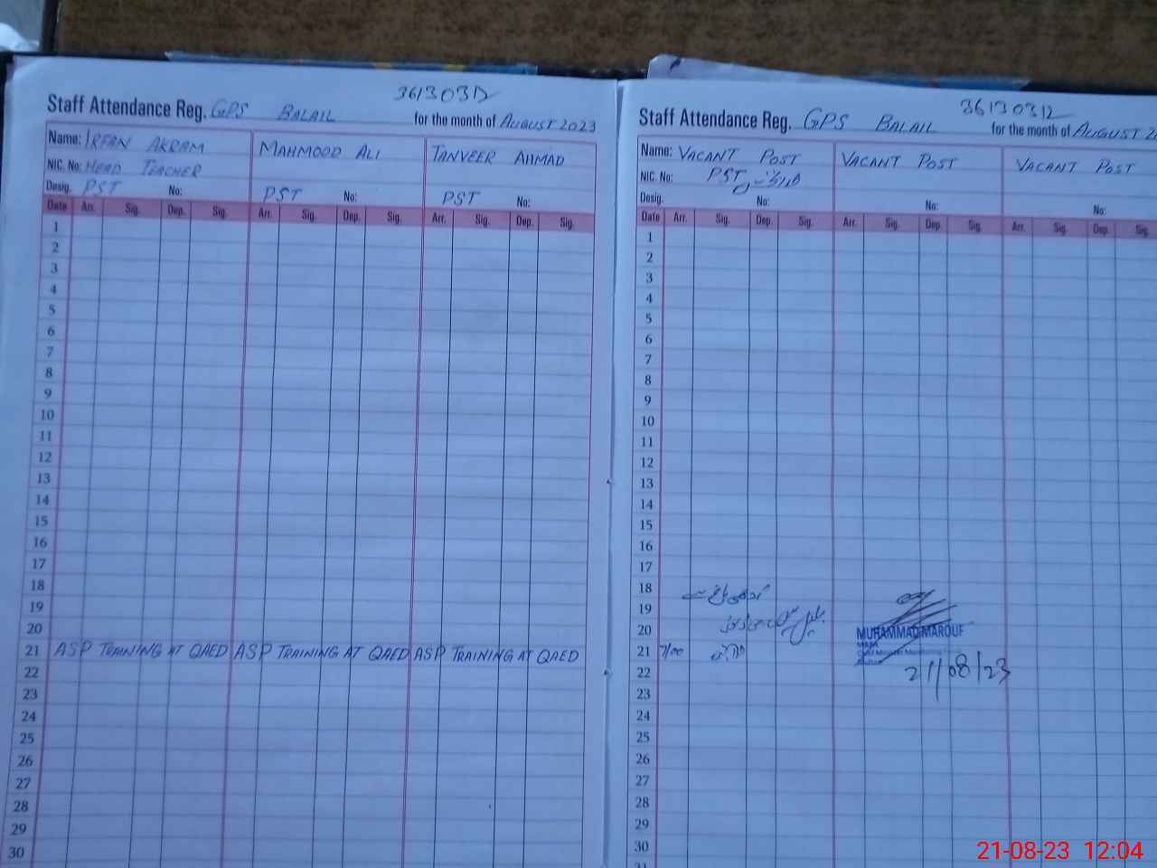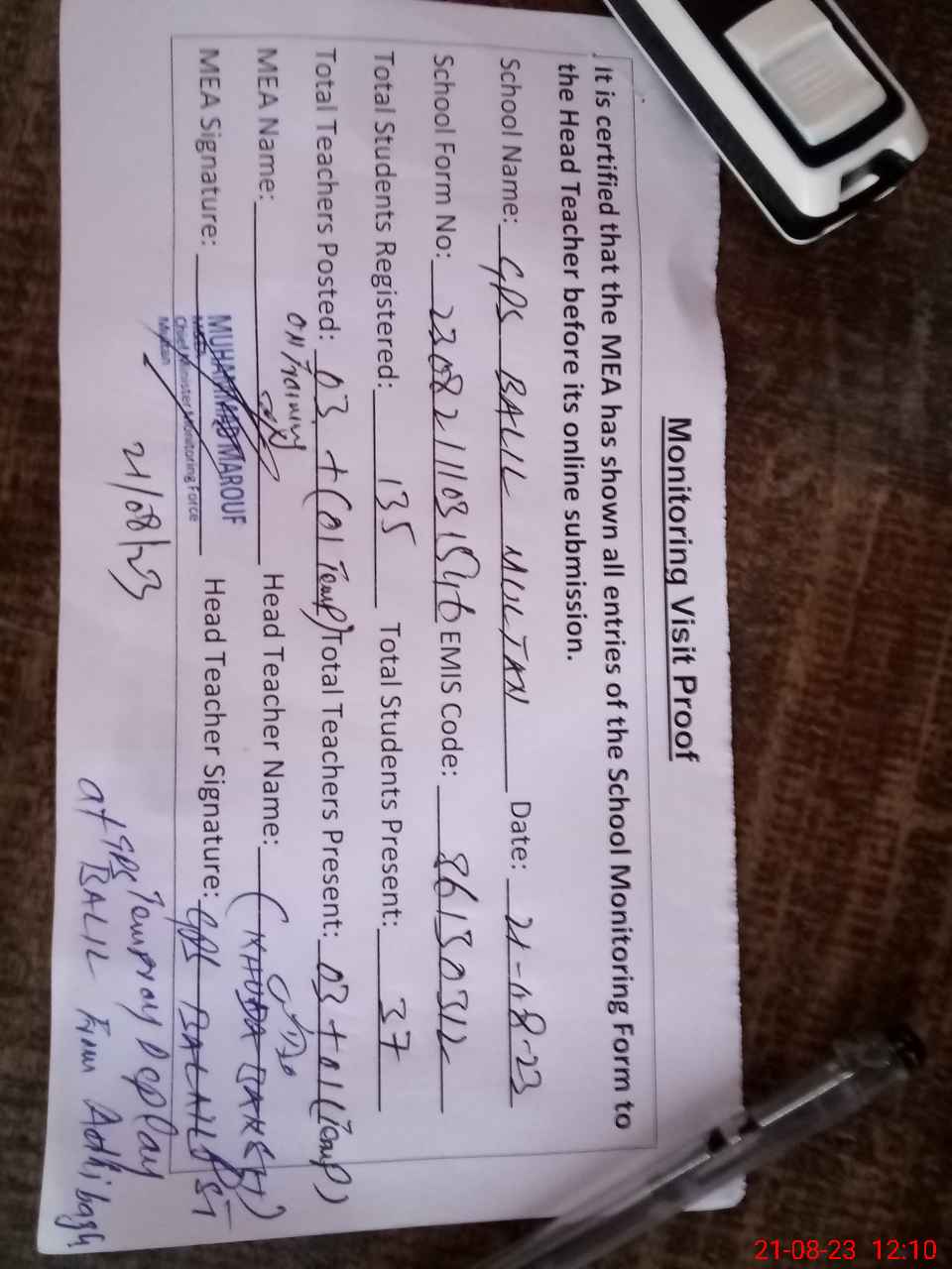 | Remarks (Use Separate Page if Required): Permanent staff 03 teacher s are on ASP QAED training 01 temporary teacher is detailed at GPS balail from GPS Adhi bagh LND not conducted due to class three students not available | |||||