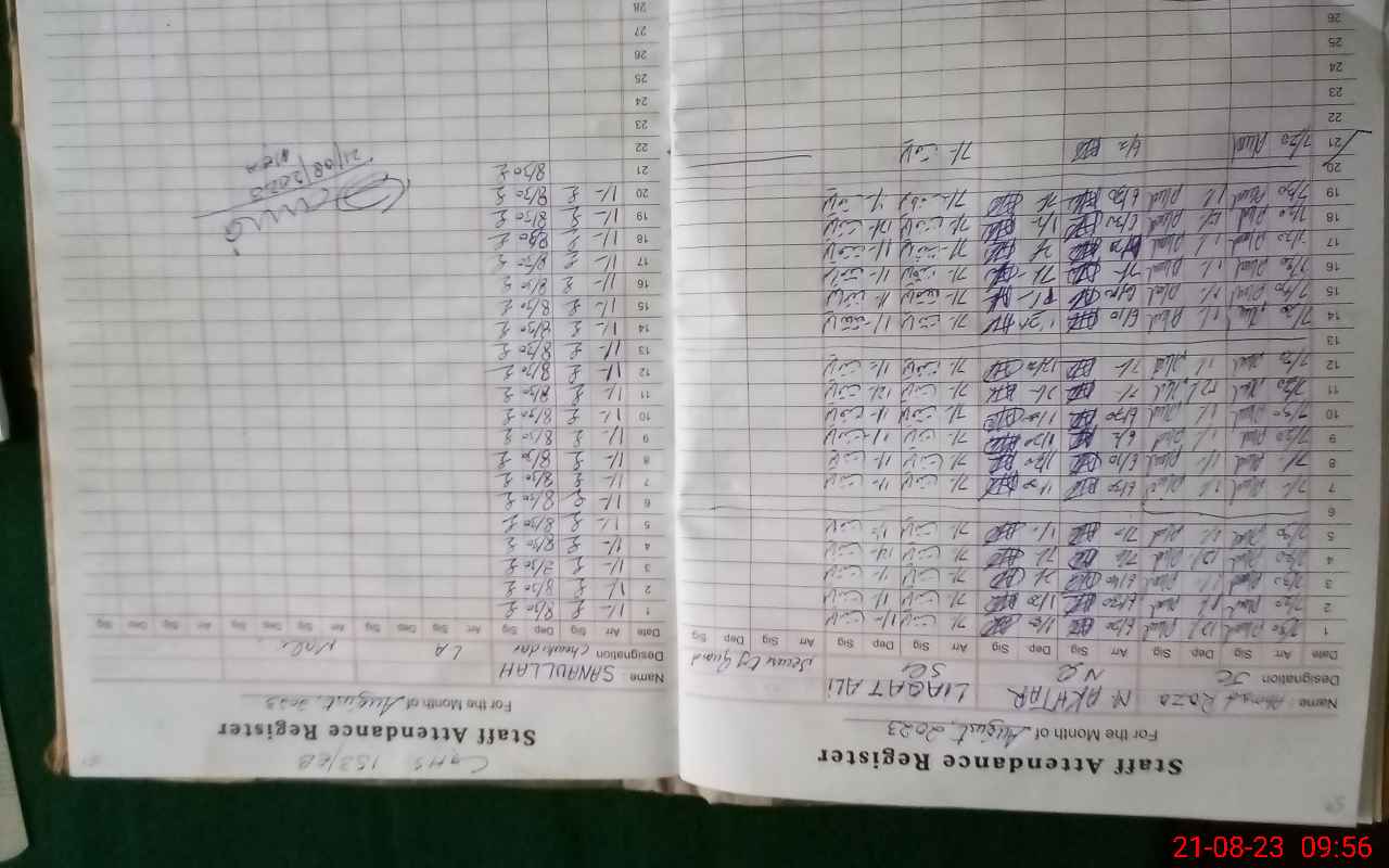 | CNIC | Full Name | Designation | R/C | Absence During Last Calender Month |