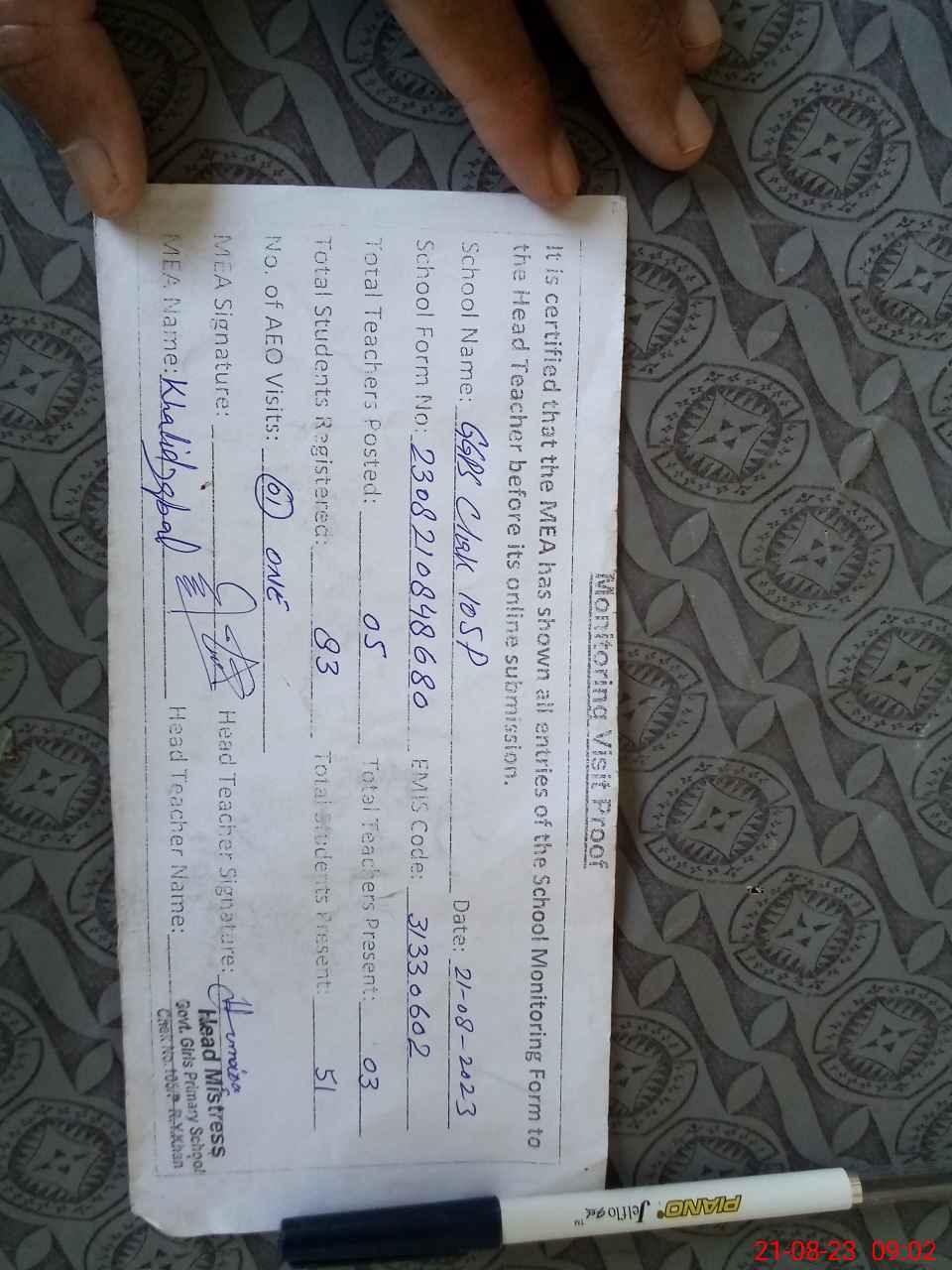 | Certified that this School was Inspected by the Undersigned MEA/DMO Today and the Information Stated Above is as Per Record. | |||||