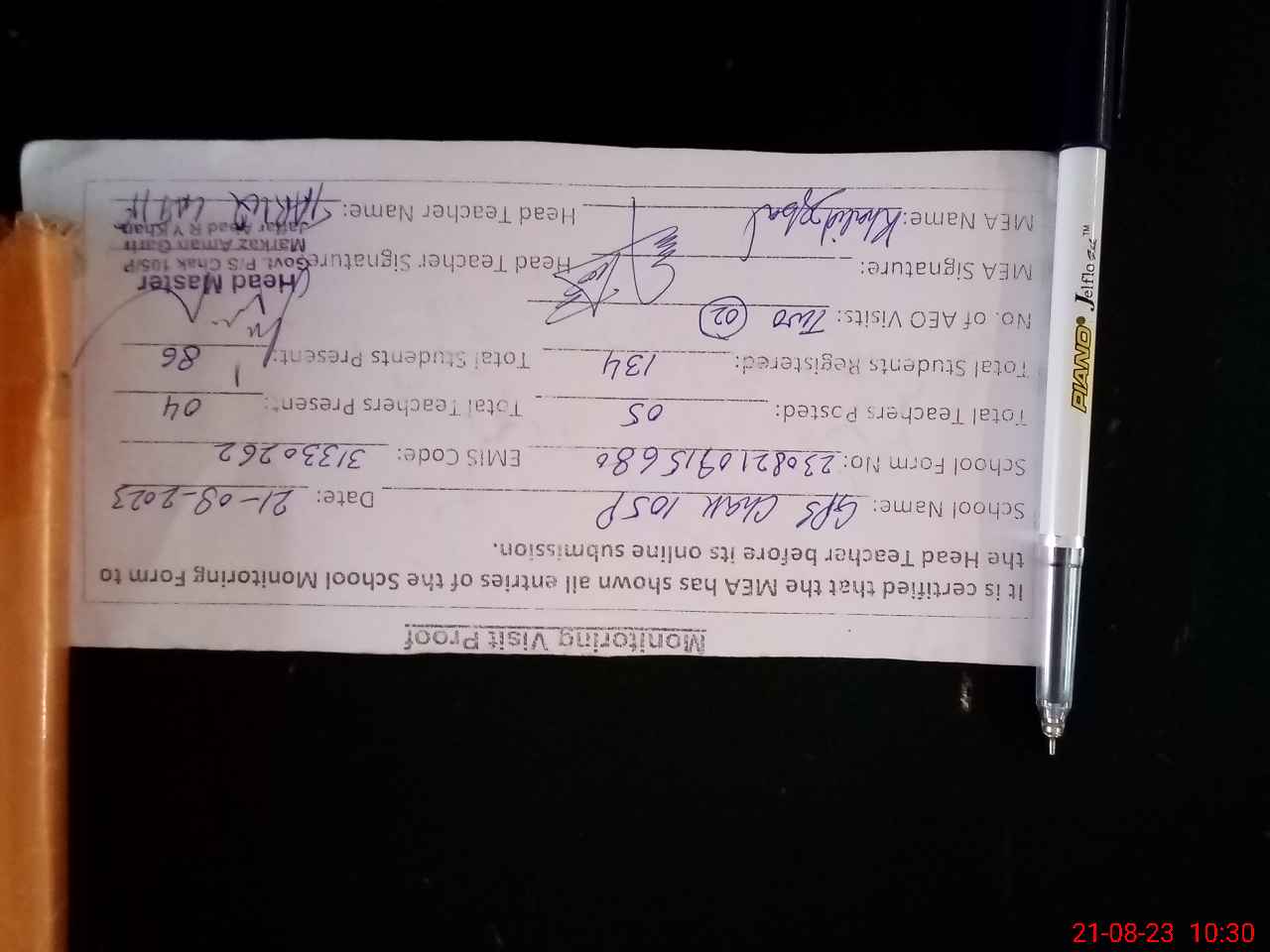 | Remarks (Use Separate Page if Required): Feeder school attached with students strength 54 and one class is sitting under shed and class verification is not updated as per sis | |||||