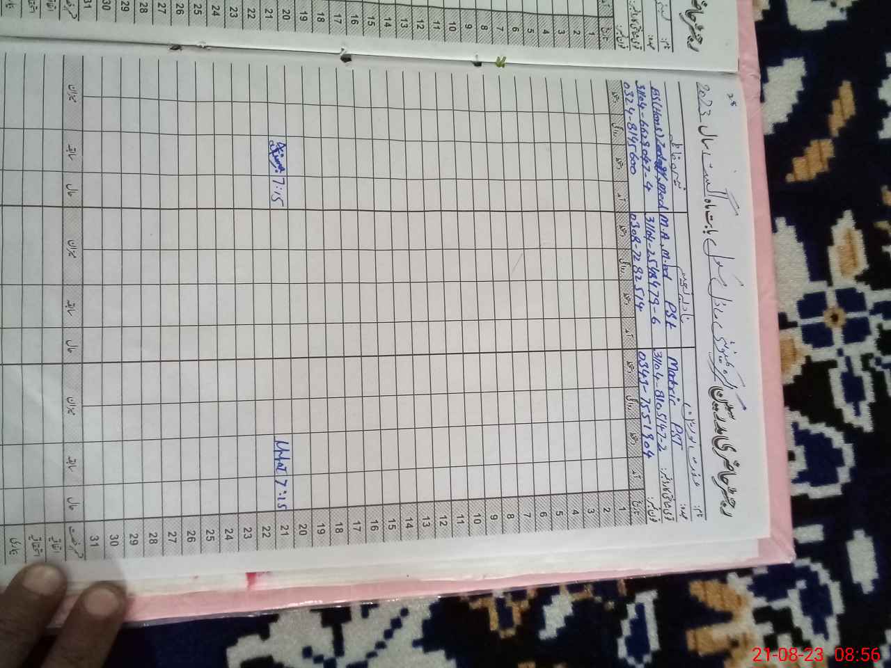 | Name: Lu**** Ya**** Designation: (School Headmaster's/Headmistress's) PST Phone/Cell Number: 03**** |