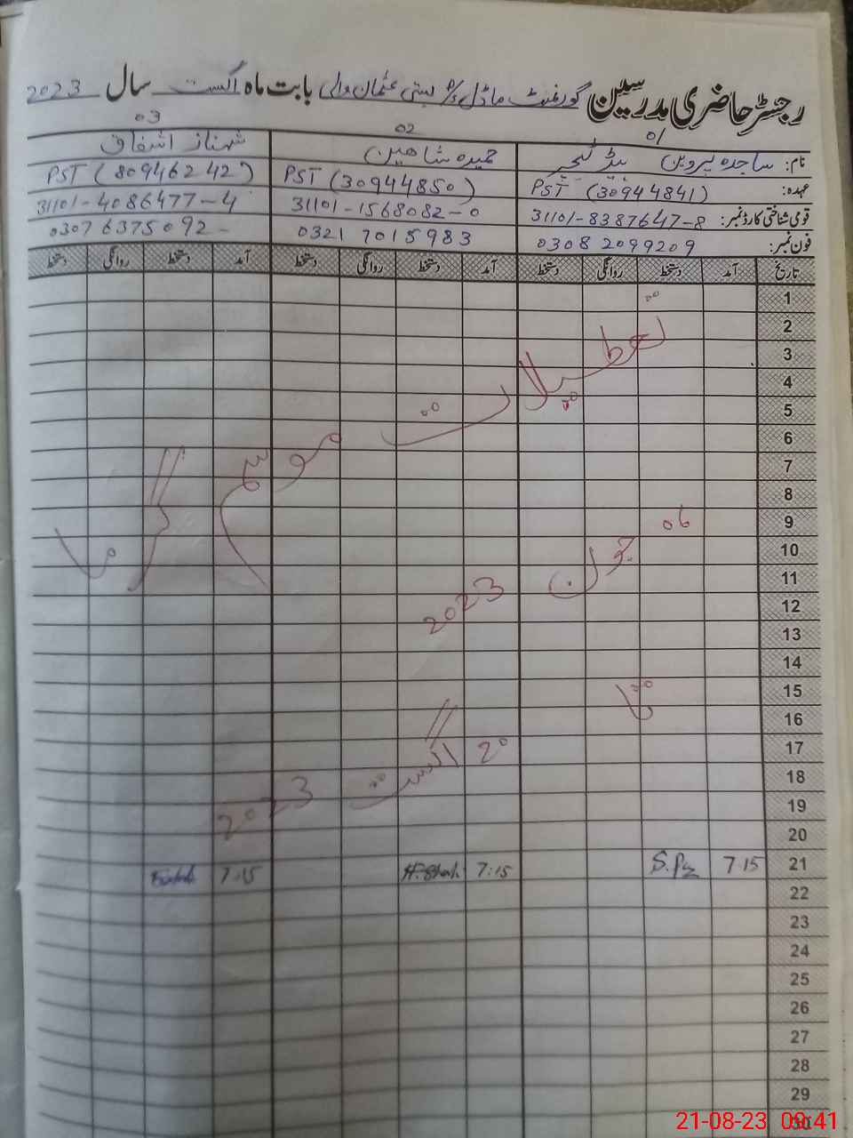| Name: SA**** PE**** Designation: (School Headmaster's/Headmistress's) PST Phone/Cell Number: 03**** |