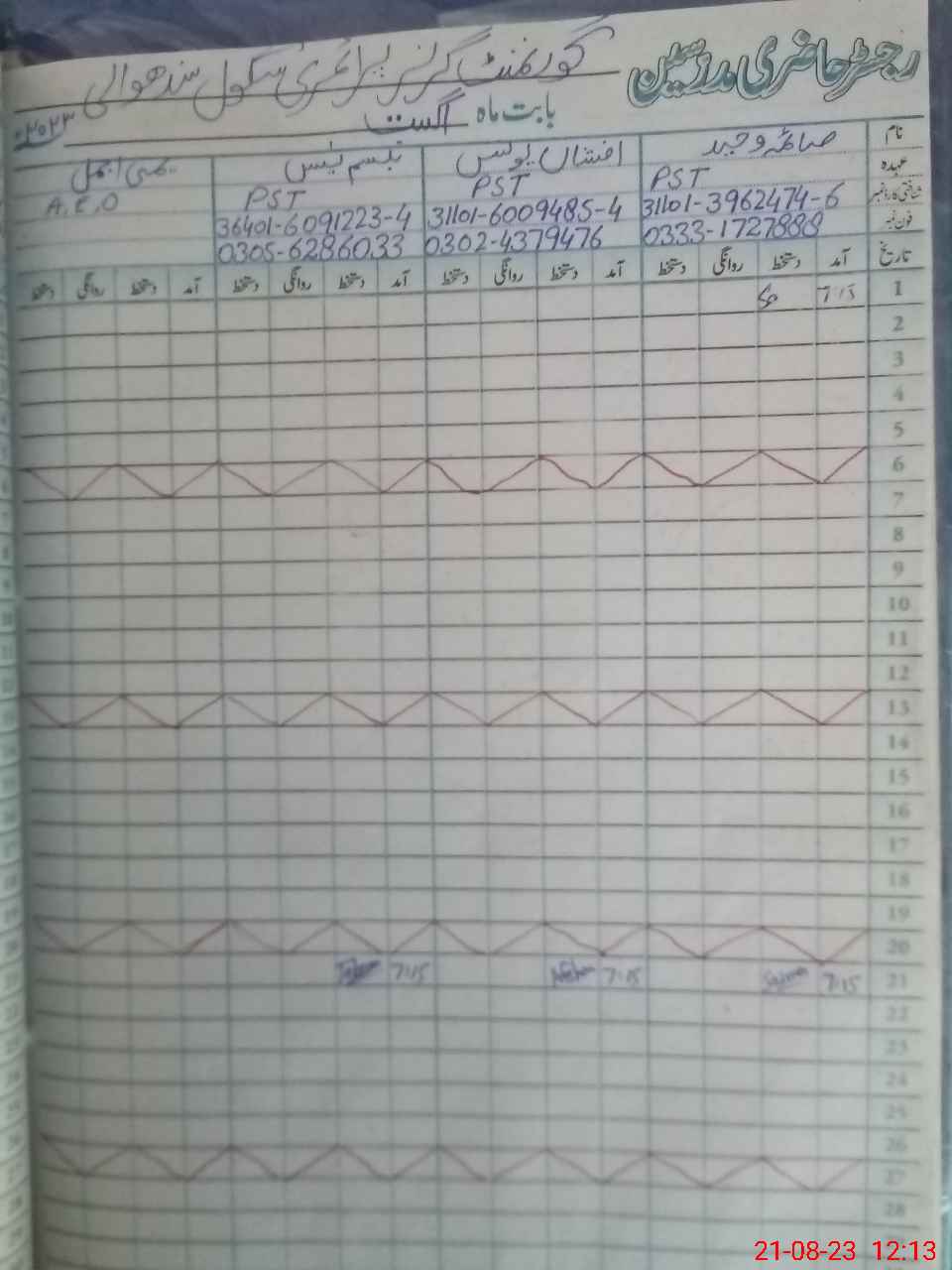 | CNIC | Full Name | Designation | R/C | Absence During Last Calender Month |