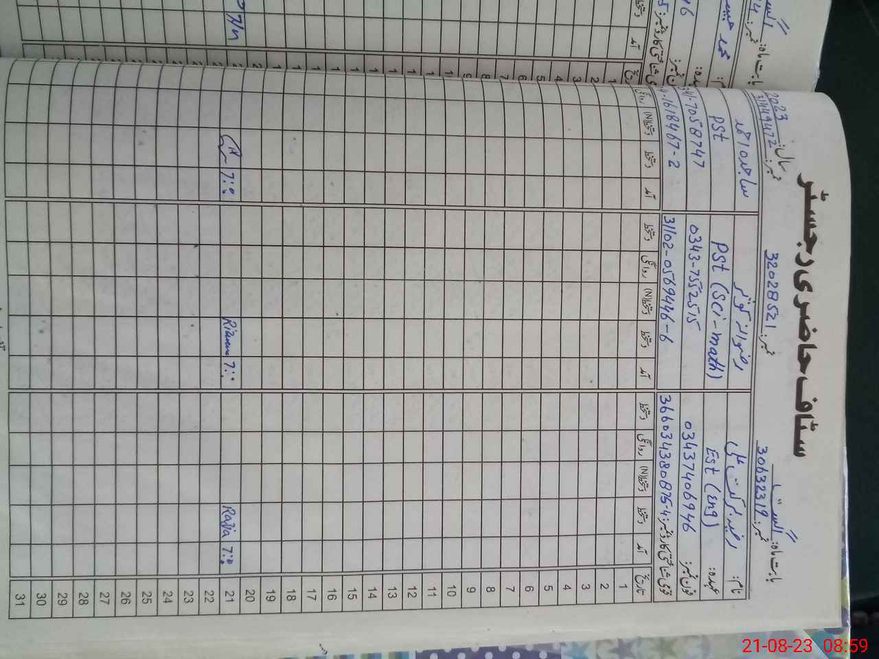 | Name: Ra**** Ba**** Al**** Designation: (School Headmaster's/Headmistress's) E S T Eng Phone/Cell Number: 03**** |