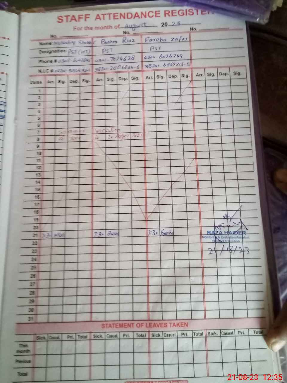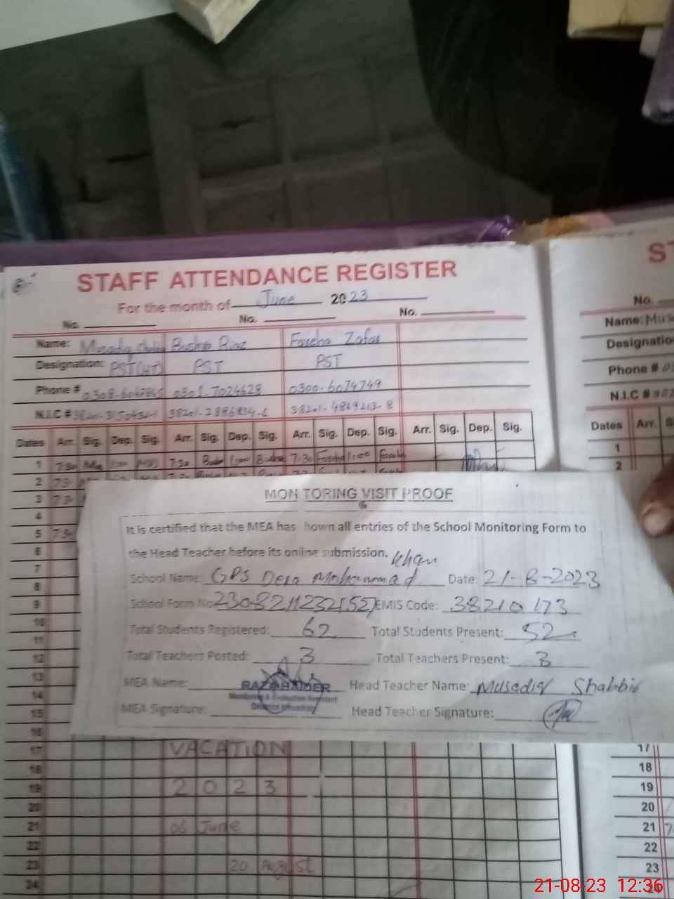 | Name: Mu**** Sh**** Designation: (School Headmaster's/Headmistress's) PST Phone/Cell Number: 03**** |