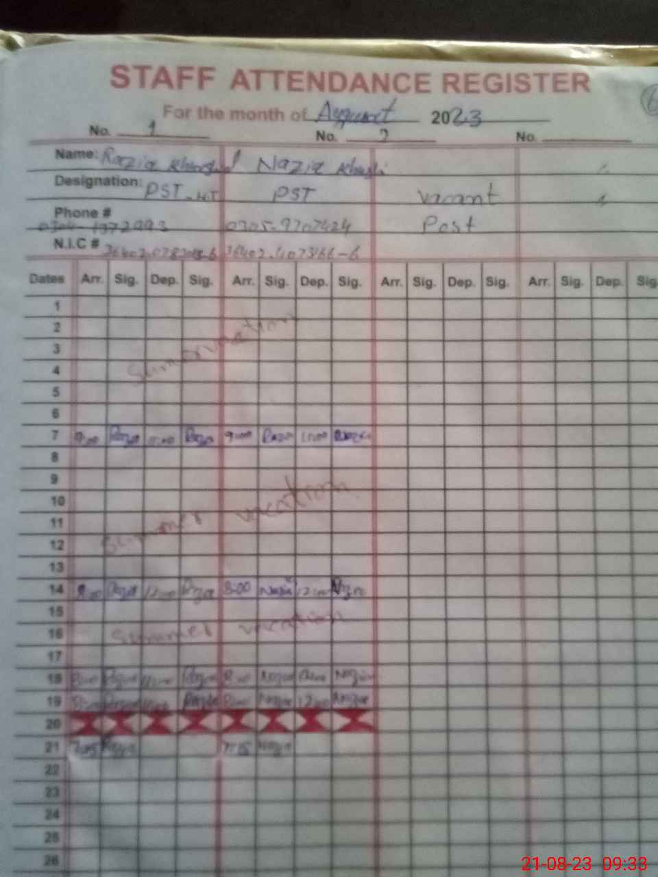 | Name: Na**** Kh**** Designation: (School Headmaster's/Headmistress's) PST Phone/Cell Number: 03**** |