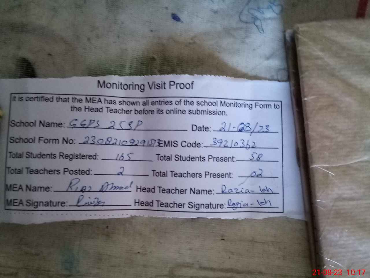 | EMIS Code: 39210362 | Name of School: GGPS 25/SP | |||