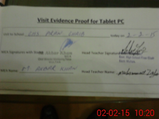 | Attendance Register | Head Teacher | MEA with School | Visit Proof |