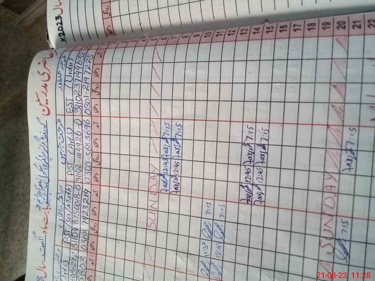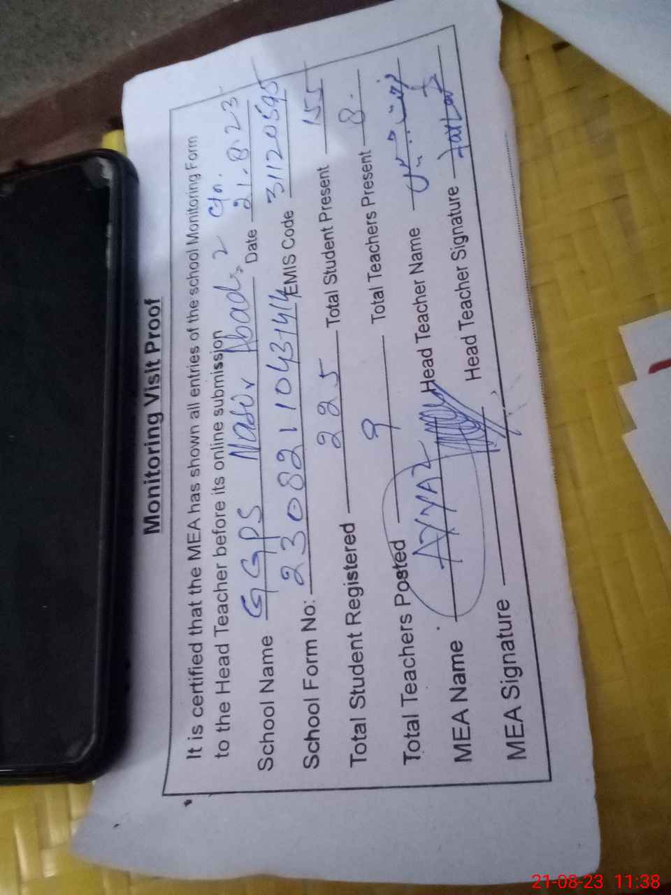 | Name: SA**** SA**** Designation: (School Headmaster's/Headmistress's) EST G Phone/Cell Number: 03**** |