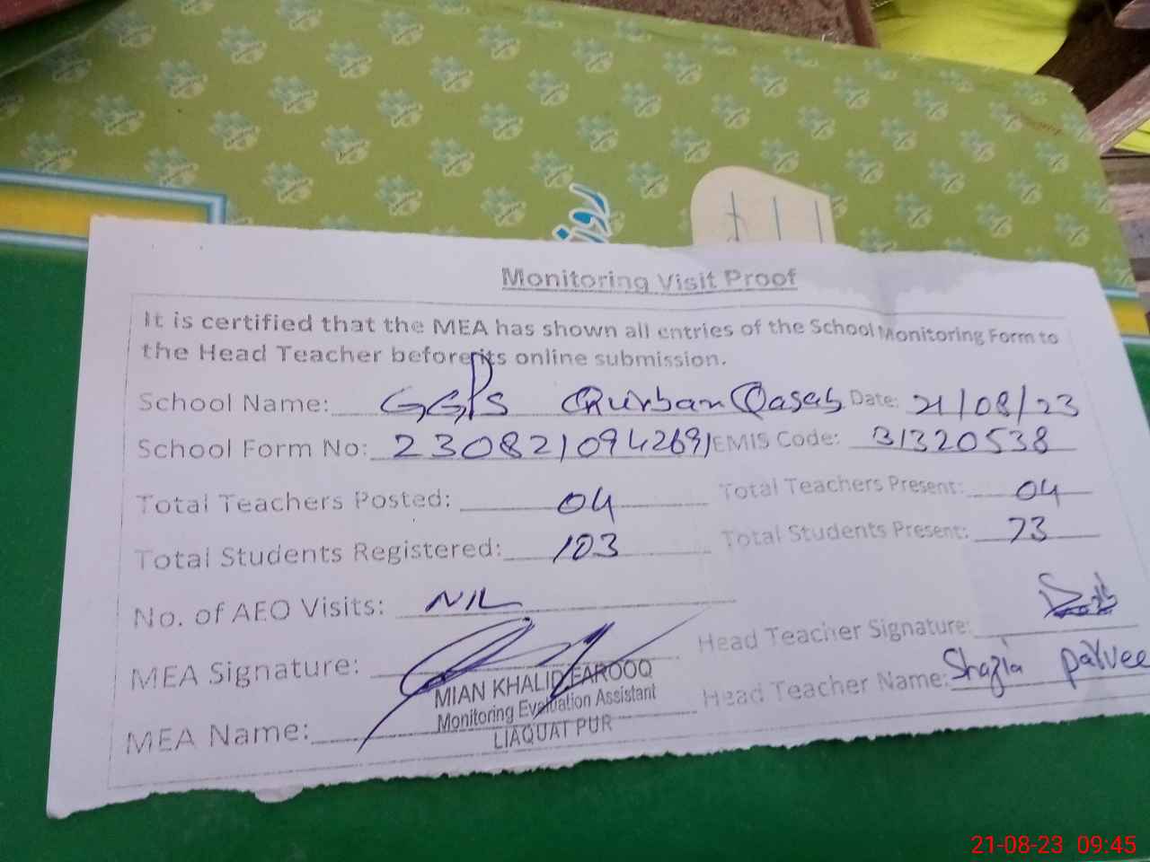 | EMIS Code: 31320538 | Name of School: GGPS BASTI QURBAN QASAB | |||