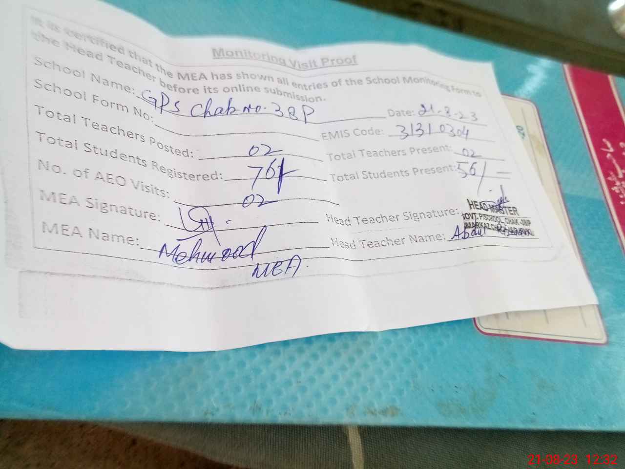 | EMIS Code: 31310304 | Name of School: GPS CHAK 38/P | |||
