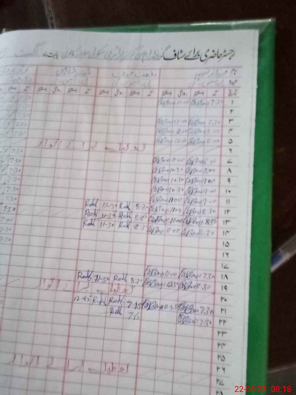 | CNIC | Full Name | Designation | R/C | Absence During Last Calender Month |
