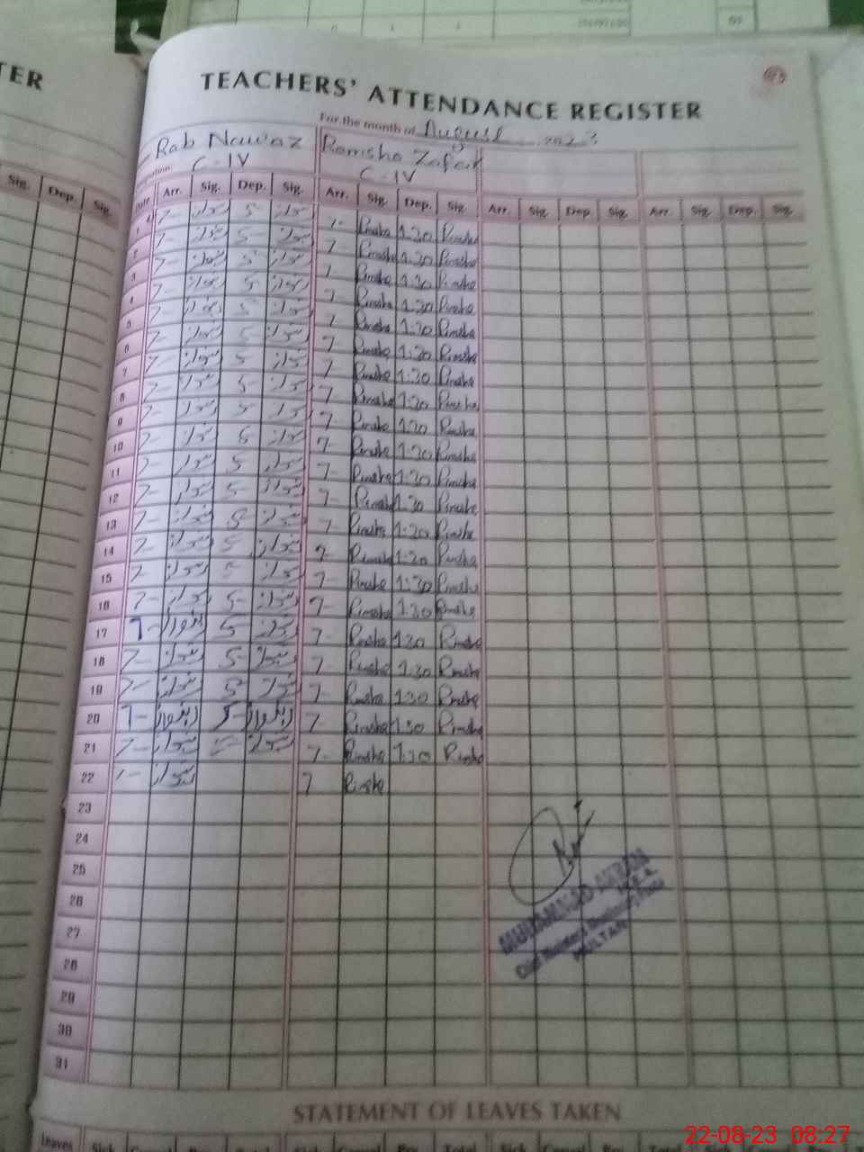 | Name: Ar**** No**** Designation: (School Headmaster's/Headmistress's) Headmistress Phone/Cell Number: 03**** |
