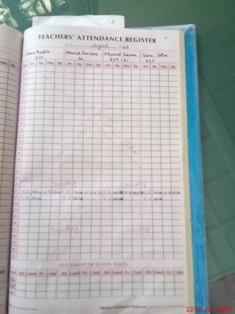 | Monitoring Date: 22-08-2023 | Start Time: 22-08-2023 08:09 AM | End Time: 22-08-2023 09:12 AM | Name of MEA: Mu**** Sa**** | |