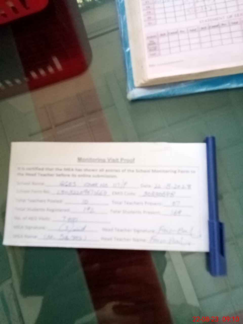 | Attendance Register | Head Teacher | MEA with School | Visit Proof |