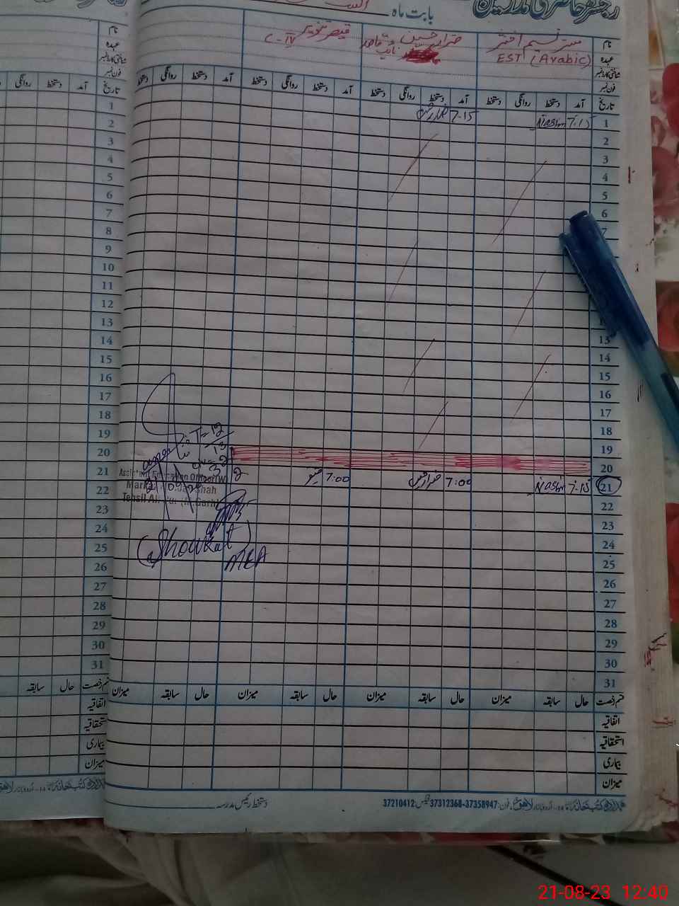 | CNIC | Full Name | Designation | R/C | Absence During Last Calender Month |