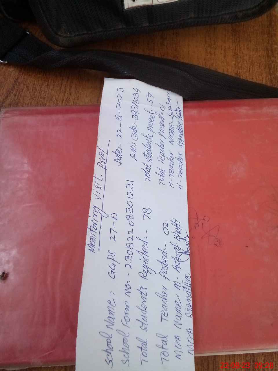 | Attendance Register | Head Teacher | MEA with School | Visit Proof |