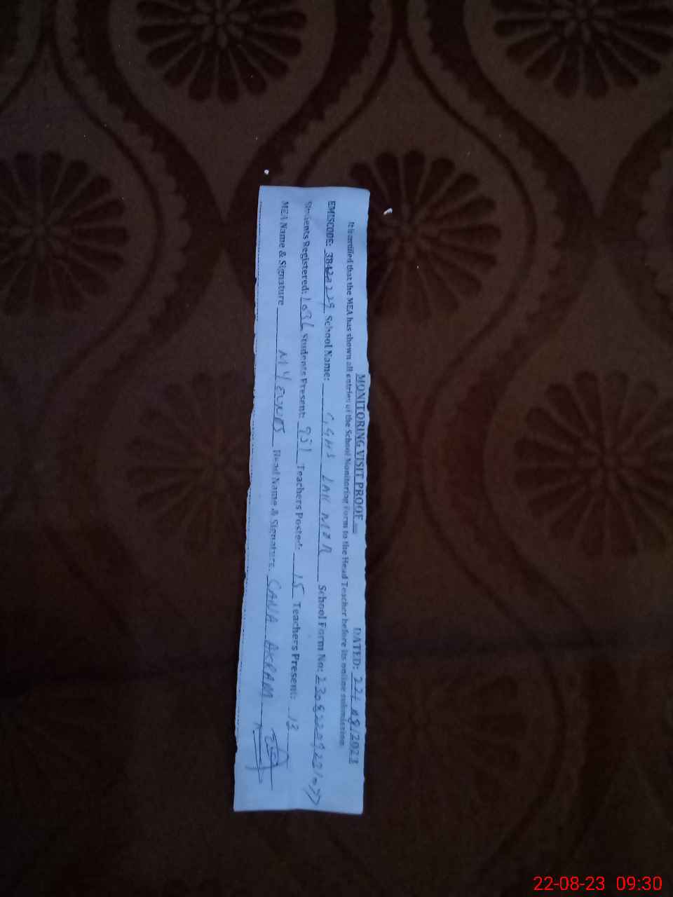 | Attendance Register | Head Teacher | MEA with School | Visit Proof |
