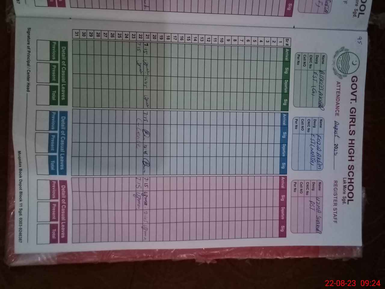 | Name: SA**** AK**** Designation: (School Headmaster's/Headmistress's) I/C SSE (CS) Phone/Cell Number: 03**** |