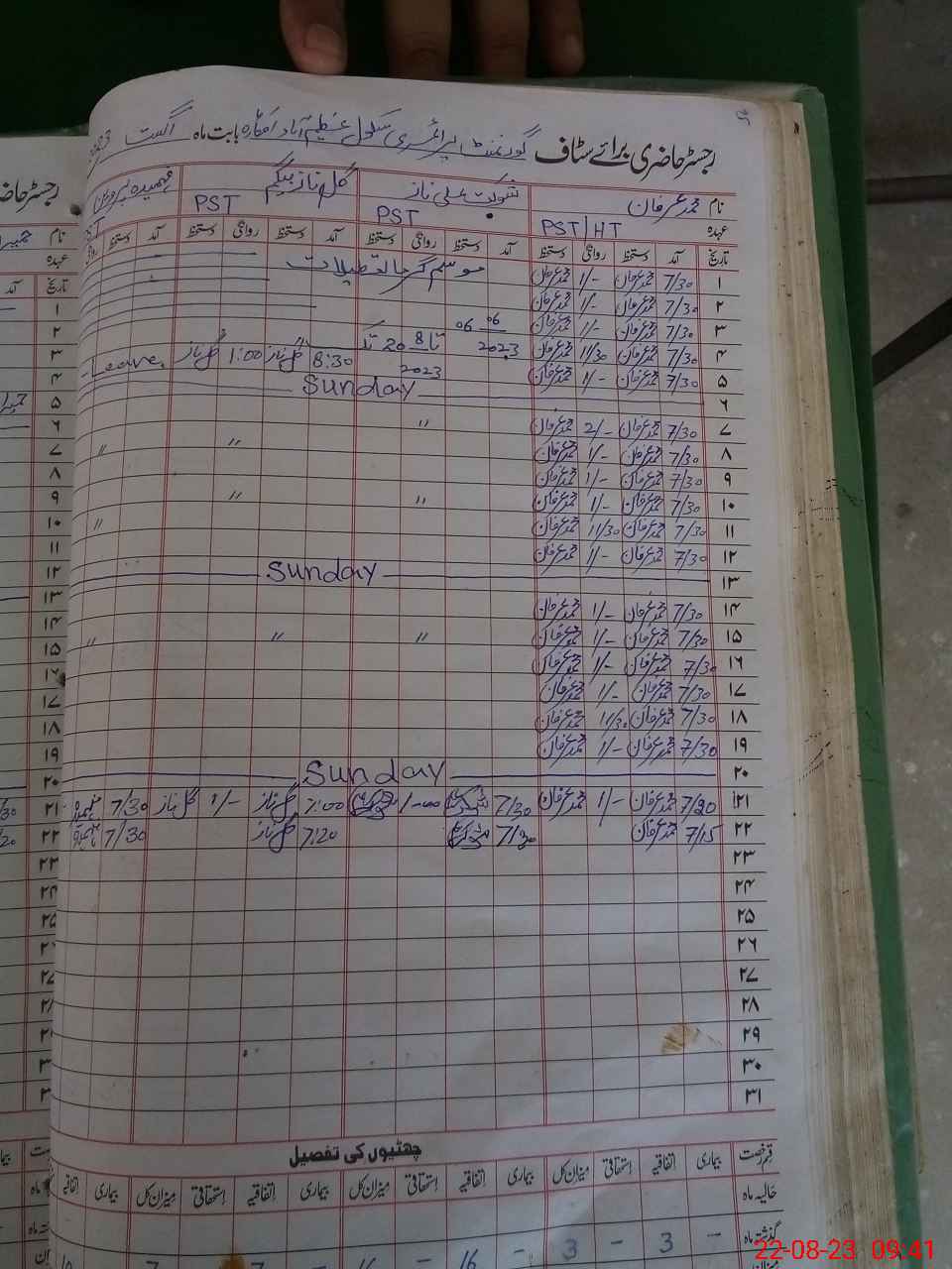 | Name: Mu**** Ir**** Designation: (School Headmaster's/Headmistress's) PST Phone/Cell Number: 03**** |