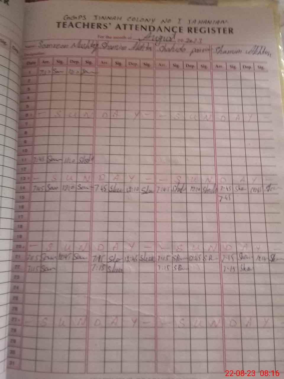 | Name: Sa**** Mu**** Designation: (School Headmaster's/Headmistress's) PST Phone/Cell Number: 03**** |