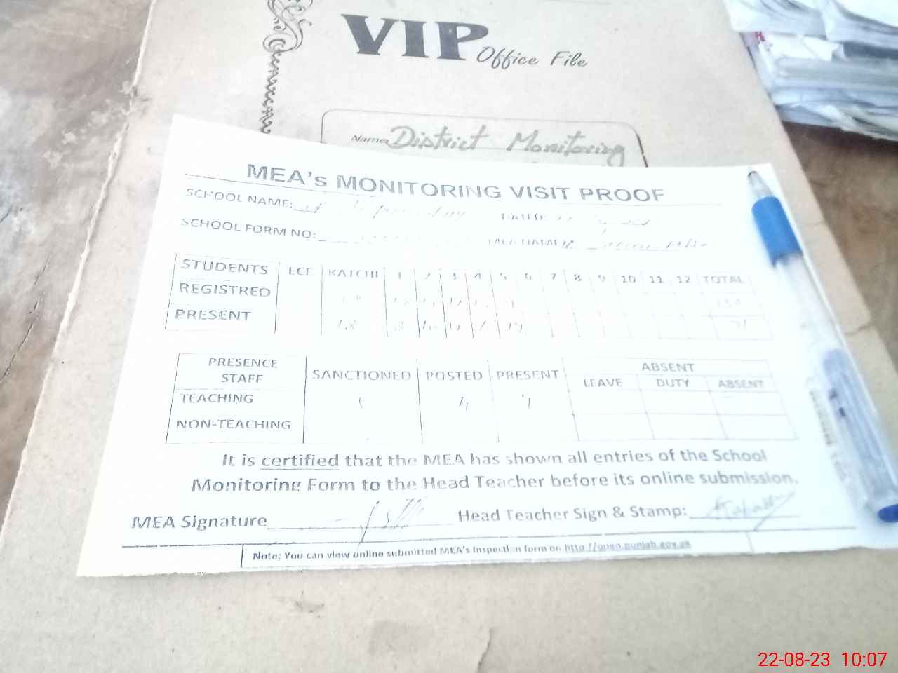 | Certified that this School was Inspected by the Undersigned MEA/DMO Today and the Information Stated Above is as Per Record. | |||||