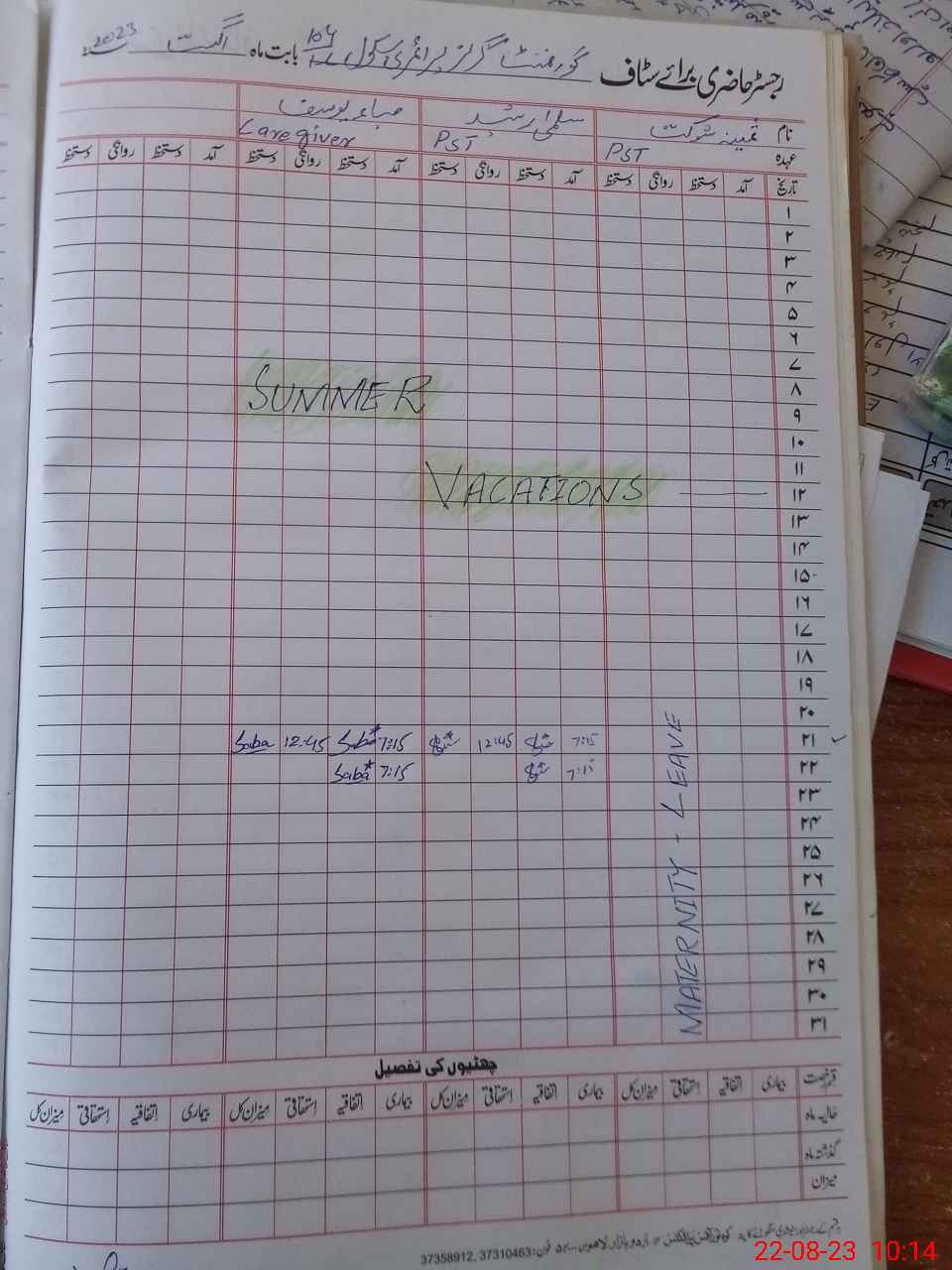 | 31**** | Sa**** Sh**** | PST | Regular | 0 | 0 | 0 | 0 | 0 | 0 | 0 | 0 | 0 | Maternity |