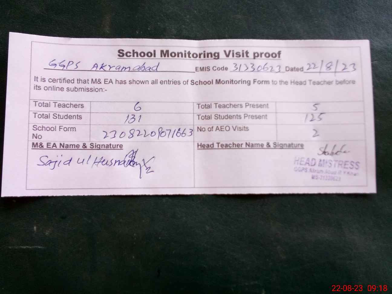 | EMIS Code: 31330623 | Name of School: GGPS AKRAM ABAD | |||